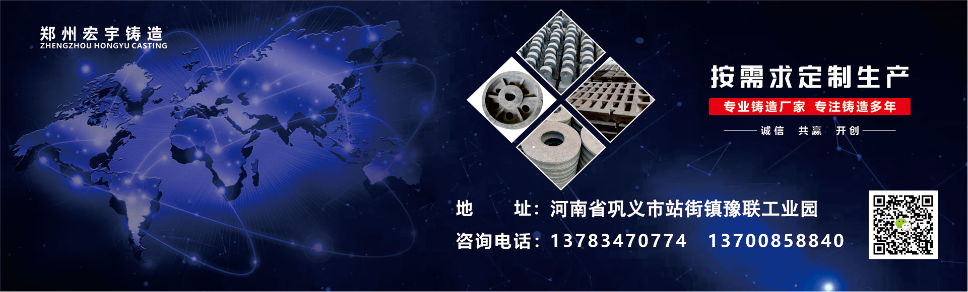 鄭州宏宇鑄造位于河南省鄭州鞏義市是鑄造件廠家,主要生產(chǎn)生鐵機(jī)械配件、耐磨襯板、耐磨錘頭、合金耐磨錘頭、制砂機(jī)錘頭、鑄鋼件、高鉻合金鑄件、球墨鑄鐵件、消失模工藝鑄件、砂型工藝鑄件等!來樣即可加工。 我們技術(shù)力量雄厚、設(shè)備齊全,目前有高級技師數(shù)名,技術(shù)人員數(shù)十名,能滿足客戶的不同需求,來圖來樣均可生產(chǎn),而且為了確保產(chǎn)品質(zhì)量進(jìn)一步得到完善和提高, 確保供貨及時(shí)達(dá)到客戶的滿意,我們采用優(yōu)質(zhì)原材料及先進(jìn)的制造工藝!